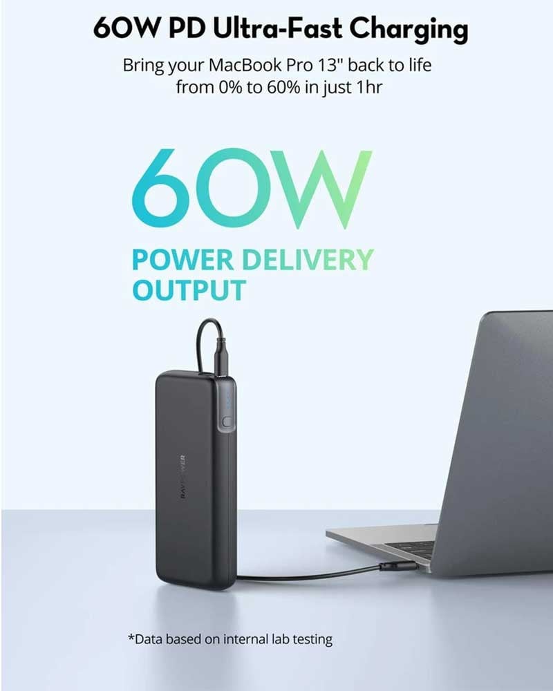 - شاحن جداري RAVPower – PD سريع وآمن.